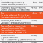 - Ingredientes clave: zinc, raíz de maca, cafeína de guaraná, vitamina E, vitamina B